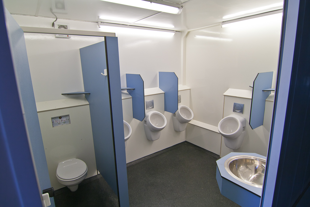 Mobile toilet units with 2 toilets and 4 x 2.5 metres of urinal trough