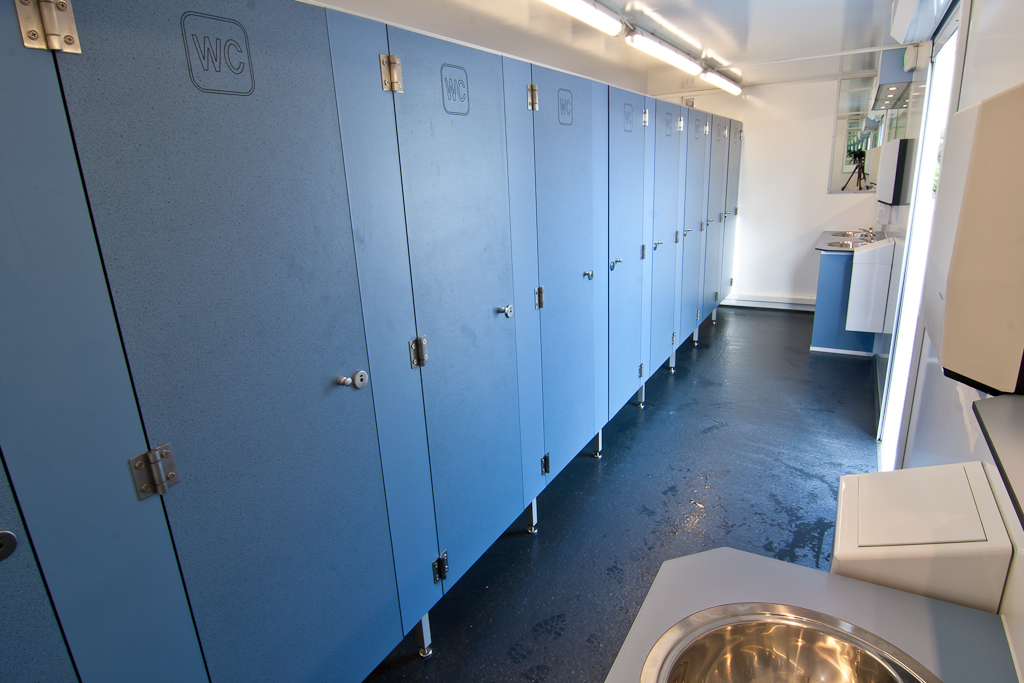 Met zijn 9 toiletten en 2 x 2 wastafels is deze unit bijzonder geschikt voor damesgebruik.