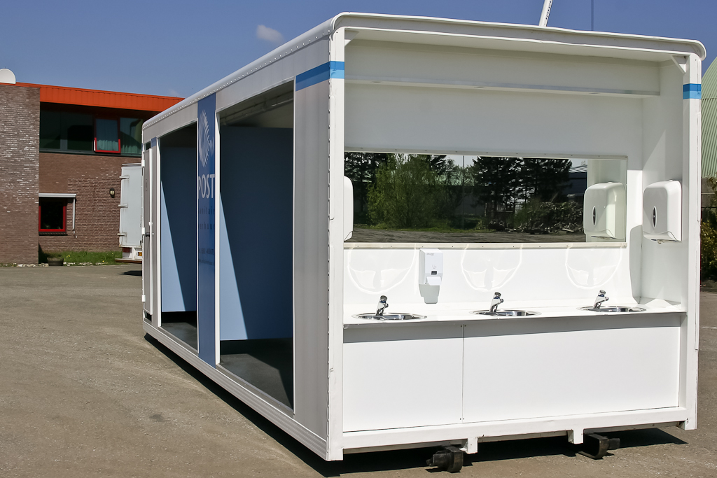 Een van de voordelen van deze luxe sanitair unit is dat het makkelijk te gebruiken is en hierdoor gebruiksvriendelijk is, omdat de wastafels aan de buitenkant staan. Dit betekent dat de faciliteiten makkelijk te bereiken zijn voor iedereen. De unit is verder voorzien van spiegels, waardoor de sanitaire ruimte ook gebruikt kan worden om jezelf op te frissen tijdens het evenement of festival.