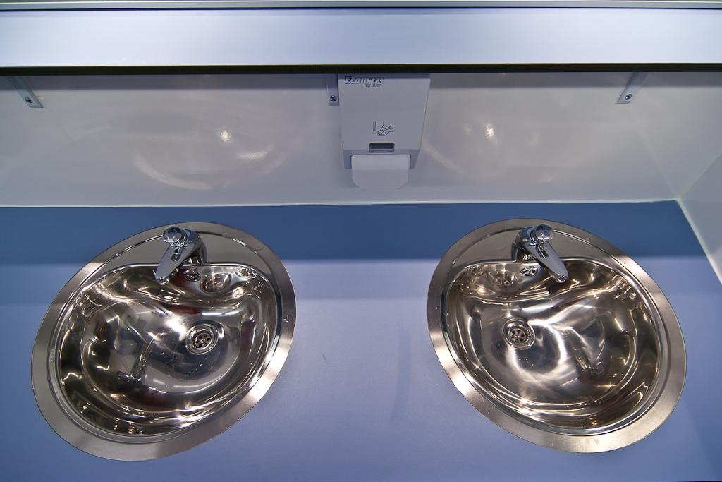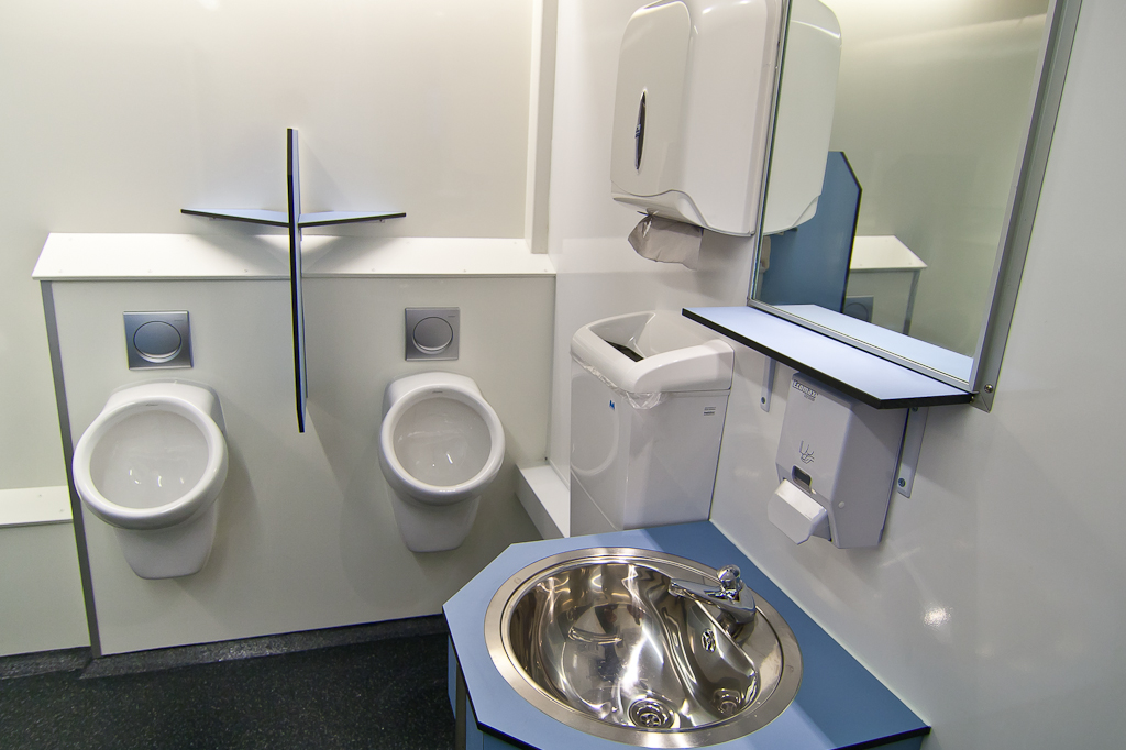 De unit is opgedeeld in twee aparte gedeelten: een dames- en een herengedeelte. Het damesgedeelte is voorzien van zes toiletten, waardoor lange wachttijden tot het verleden behoren. Het herengedeelte beschikt over vijf waterloze urinoirs, wat niet alleen milieuvriendelijk is, maar ook zorgt voor een snelle doorstroom van gebruikers. Daarnaast zijn er drie wastafels aanwezig, zodat iedereen zijn handen kan wassen na gebruik van het toilet. De wastafels zijn voorzien van zeepdispensers en handdoekhouders, wat bijdraagt aan de hygiëne en het comfort van de gebruikers.